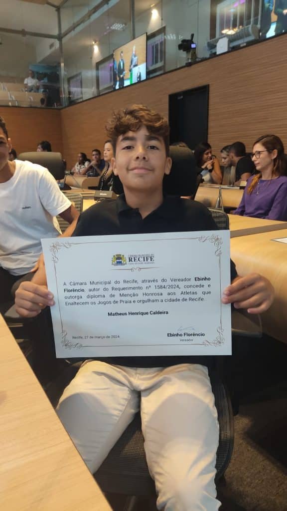 E nesta quarta feira dia 27/03/2024, recebeu uma Homenagem na Câmara municipal do Recife as 18:00 com o tema: Atletas que enaltecem os esportes de praia e orgulham a cidade de Recife.