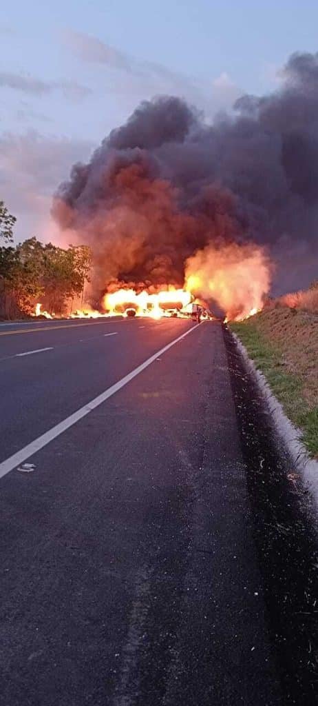 De acordo apuração do repórter João Lã, por volta das 5h40, um caminhão-tanque explodiu no km 545 da rodovia, em Augusto de Lima, na Região Central de Minas.