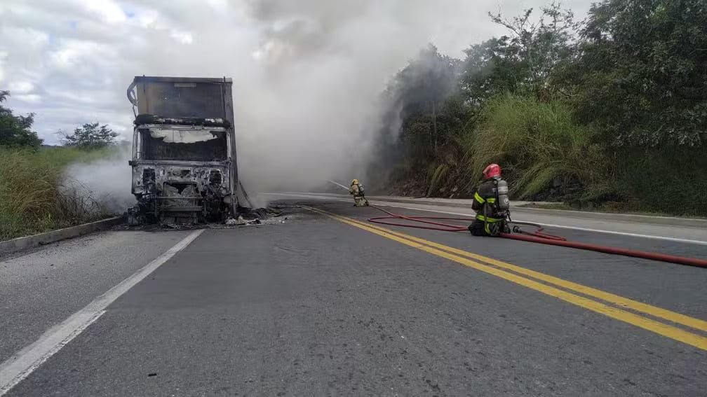 Na tarde desta terça-feira (23 de abril), uma carreta, que transportava pacotes de salgadinhos, de Sete Lagoas (MG) para Maceió (AL), pegou fogo, na BR-251, em Salinas, aqui no Norte de Minas. Ninguém se feriu.
