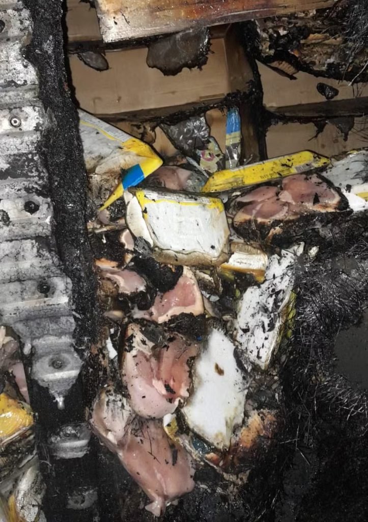 Uma carreta, carregada com carne de frango, pegou fogo na noite dessa segunda-feira (26), em Cachoeira do Vale, distrito de Timóteo.
