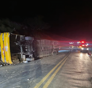 De acordo com informações das equipes de resgate, o veículo transportava 48 ocupantes e seguia de Arapiraca, em Alagoas, com destino a Itapema, em Santa Catarina.