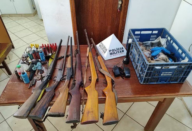 A Polícia Militar de Meio Ambiente prendeu cinco pessoas e apreendeu seis armas em uma operação de combate à caça predatória em Engenheiro Navarro.