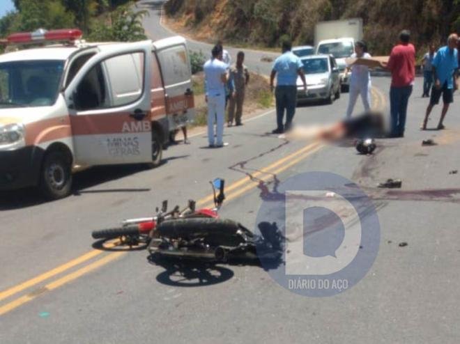 Duas pessoas morreram em um grave acidente envolvendo uma moto e um caminhão no fim da manhã desta terça-feira (05), na estrada de acesso à BR-458, em Ipaba (MG).