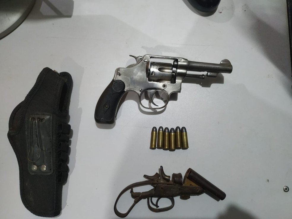 Os militares foram até a casa de pai e filho e encontraram uma garrucha no guarda-roupas e um revólver no quintal da imóvel. Segundo a PM, o idoso confessou que fugiu do presídio de Manga (MG), após ser preso por um estupro cometido em Jaíba (MG). Após fugir, ele passou a morar em Taiobeiras. O filho dele havia chegado na cidade há pouco tempo, depois de residir em São Paulo.