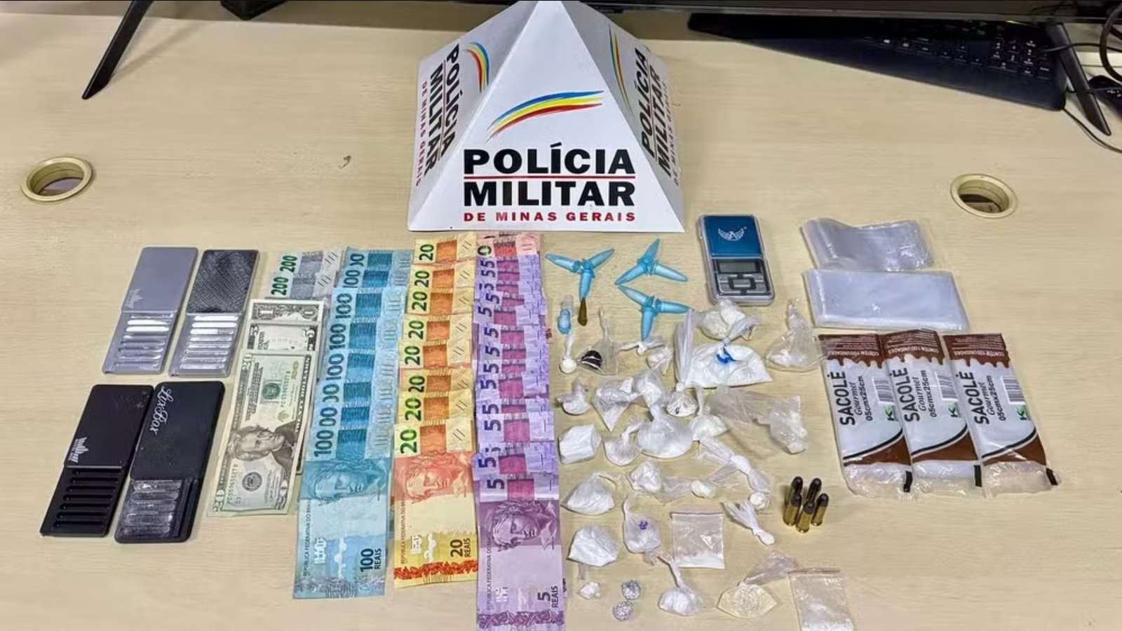 Conforme a PM informou, o veículo foi interceptado e, durante a abordagem, foram encontrados 11 pinos de cocaína, 31 porções da droga e quatro recipientes desse entorpecente. Além disso, cinco munições foram apreendidas junto com material para embalar drogas, uma balança de precisão e R$ 1.462 em dinheiro.