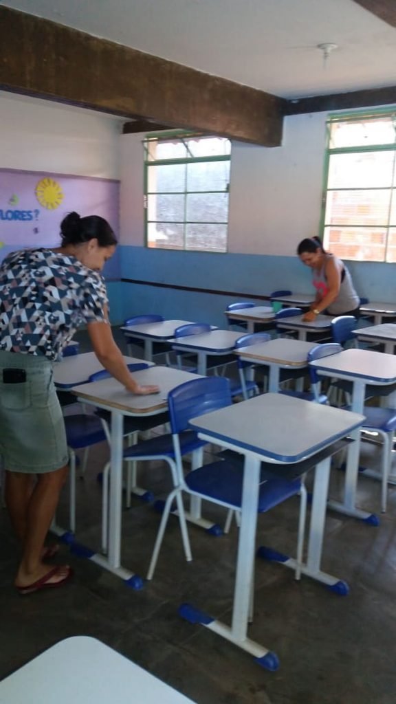 Na manhã desta quarta-feira (4), os funcionários se uniram em um mutirão para fazer a limpeza das instalações. A escola passou por uma reforma em 2019, orçada em R$ 8 mil. Os trabalhos foram feitos pela Prefeitura em conjunto com a comunidade.