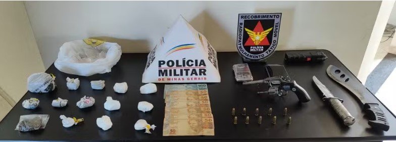 Ao todo, foram encontrados dentro da residência, um revólver calibre 32, 10 munições, seis porções de cocaína, sete tabletes e uma bucha de maconha, R$ 500, uma balança de precisão, duas facas com resquícios de maconha, um aparelho de choque elétrico e diversas embalagens de plásticas.