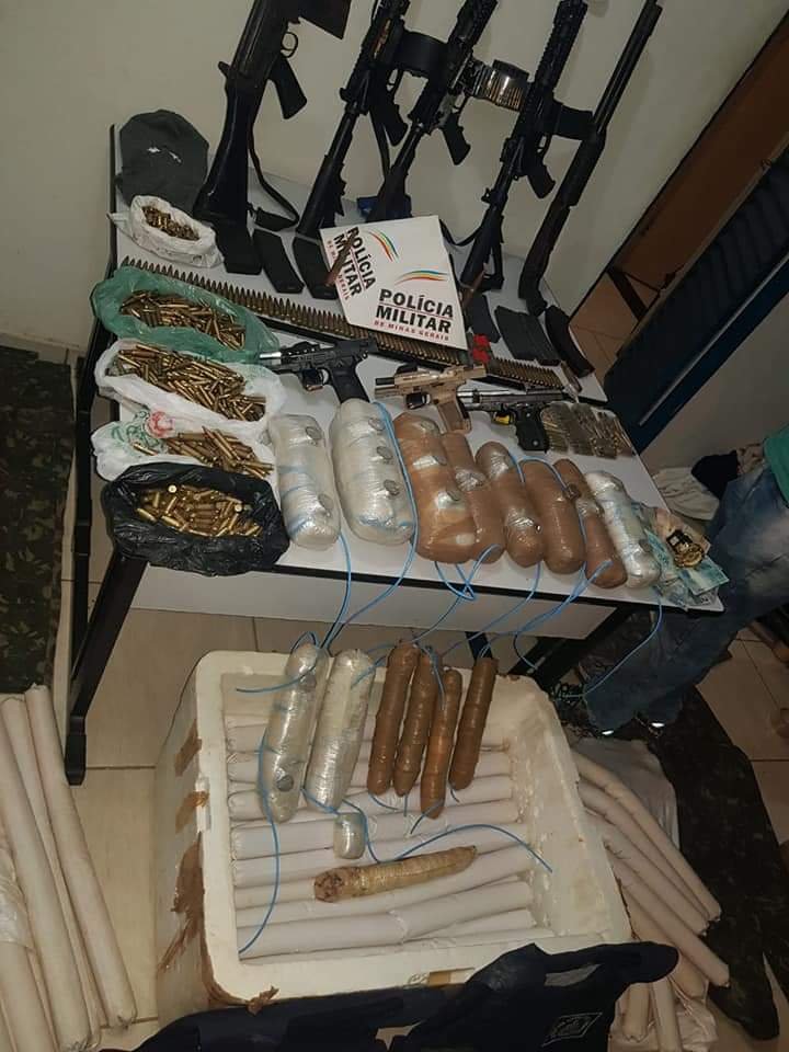 Com eles, foram apreendidos quatro fuzis, além de espingarda, pistolas, munições e aproximadamente 400 quilos de explosivos. O material estava em um sítio utilizado como esconderijo na zona rural de Padre Carvalho. Três veículos utilizados pelo grupo também foram localizados.