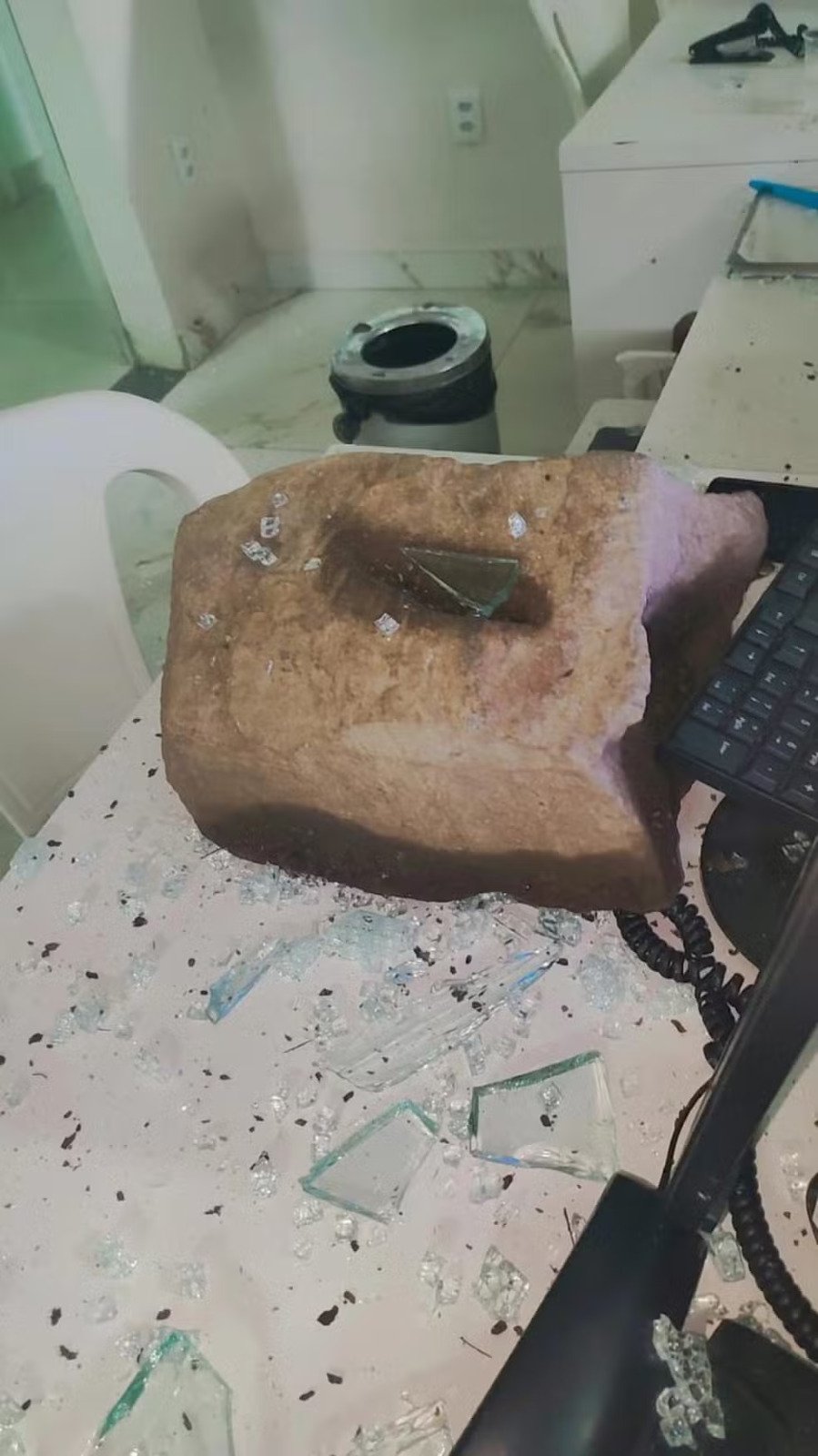 Sobre o dano provocado no hospital, a menor teria chegado no local pedindo que a atendente ligasse para a Polícia Militar porque ela estaria sendo importunada por um homem com quem havia passado a noite. Após fazer o pedido, ela saiu e retornou com uma pedra de 50 centímetros, usada para quebrar o vidro da bancada de atendimento. Ela foi localizada pela PM durante as buscas.
