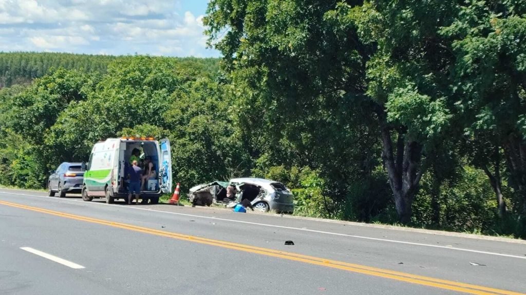 Um carro colidiu com um caminhão, na manhã desta terça-feira (21), no km 464 da BR-135, entre o distrito de Engenheiro Dolabela, zona rural de Bocaiuva (MG), e a cidade de Joaquim Felício, aqui no Norte de Minas.