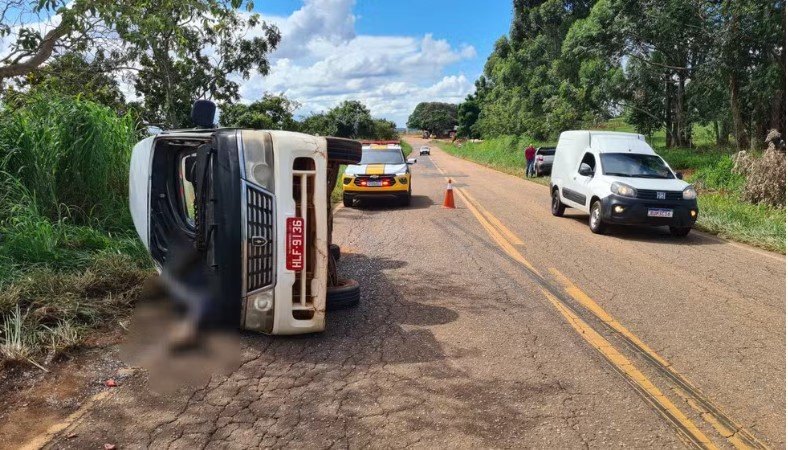 Uma van escolar tombou na MG-188 próximo à Coromandel na tarde desta segunda-feira (4). O motorista do veículo morreu no local e dois estudantes ficaram feridos.