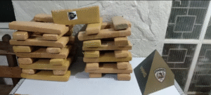 Durante a inspeção, foram encontradas 37 barras de maconha embaladas e prontas para venda.