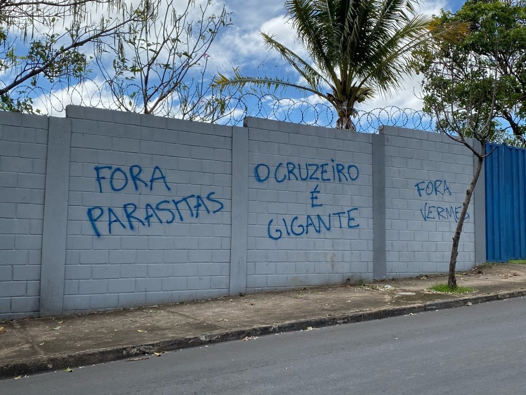 Os muros da Toca da Raposa II, na região da Pampulha, em Belo Horizonte, amanheceram nesta quinta-feira pichados com mensagens direcionadas a jogadores do elenco celeste. “Onde estiverem, estamos de olho”, “a farra acabou”, “some do Cruzeiro”, “sevandijas”, “fora parasitas”, “fora verme”, são alguns dos dizeres.