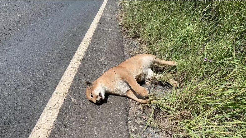 Uma onça-parda foi encontrada morta na MGC-135, em Mirabela, nesta quarta-feira (17).