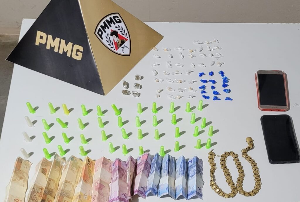 Ao todo, foram apreendidas 56 pedras de substância semelhante a crack, 44 pinos de substância semelhante à cocaína, cinco buchas de substância semelhante à maconha, dois aparelhos celulares e R$ 255 em dinheiro.