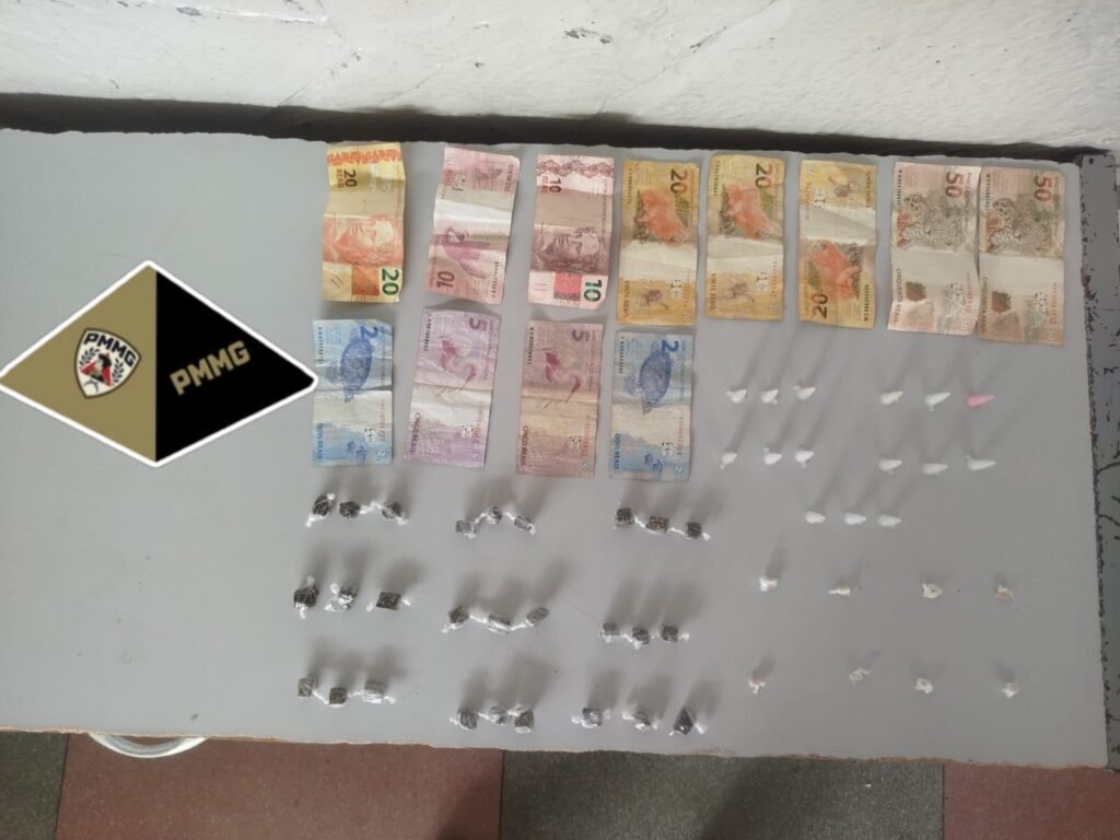 Na busca pessoal, foi encontrado com um dos suspeitos um invólucro plástico contendo 27 porções de substância esverdeada semelhante à maconha, além de dinheiro em espécie. Com o outro abordado, os policiais localizaram um pote metálico com 15 pinos contendo substância semelhante à cocaína e oito porções petrificadas semelhantes a crack, além da quantia de R$ 214,00.