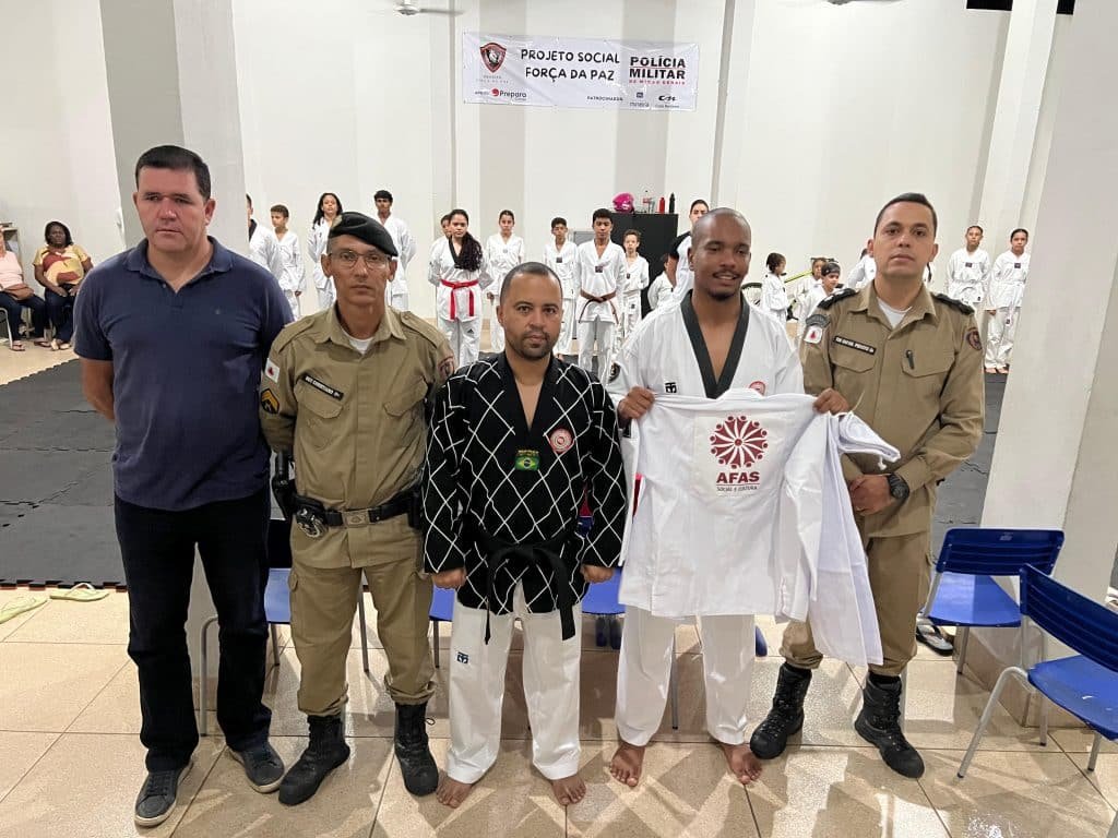 Ainda na oportunidade, o Ten Rafael Peixoto fez a entrega simbólica de kimonos ao Projeto, os quais foram doados pela AFAS – Associação Feminina de Assistência Social e Cultura, sediada em Belo Horizonte, como prêmio por ter sido considerado um dos Projetos Sociais de maior destaque, no âmbito da Polícia Militar do Estado de Minas Gerais.