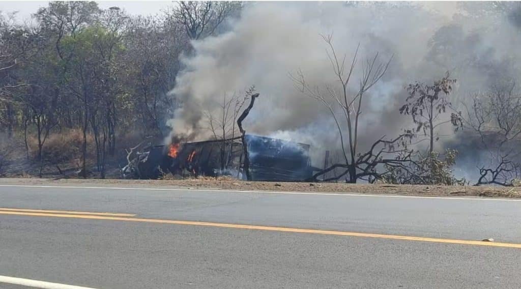 Quatro indivíduos foram detidos após provocarem incêndio no incêndio próximo ao local onde um caminhão carregado de uvas tombou na BR-135, em Joaquim Felício.