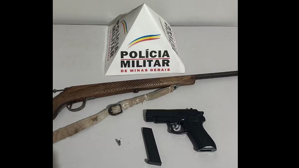 Com o indivíduo, foram encontrados pela polícia uma imitação de pistola, um rifle e duas blusas com capuz.
