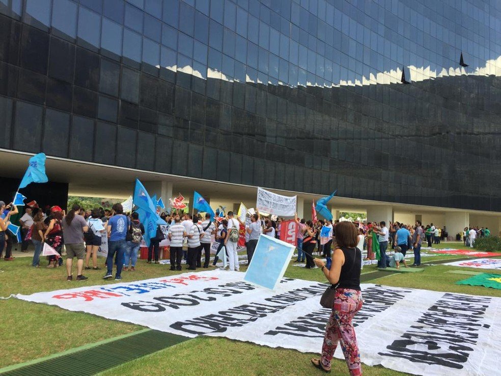 Servidores do estado fizeram nesta quarta-feira, uma manifestação na porta da Cidade Administrativa, em Belo Horizonte. Eles protestaram contra a falta de previsão para o 13º salário.